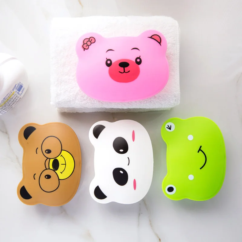 معرض من 1 قطعة الكرتون الحيوان المحمولة الصابون مربع الصابون حامل السفر الحمام صحن الصابون مجوهرات تخزين مربع