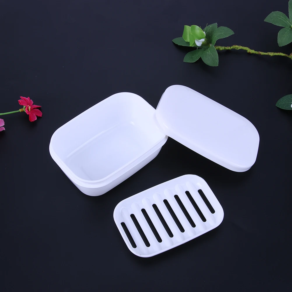 معرض ل 1 قطعة المنزل السفر الصابون مربع صحن الصابون حامل مع غطاء ختم مانعة للتسرب استنزاف طبقة حالة التخزين المحمولة منتجات الحمام سلة