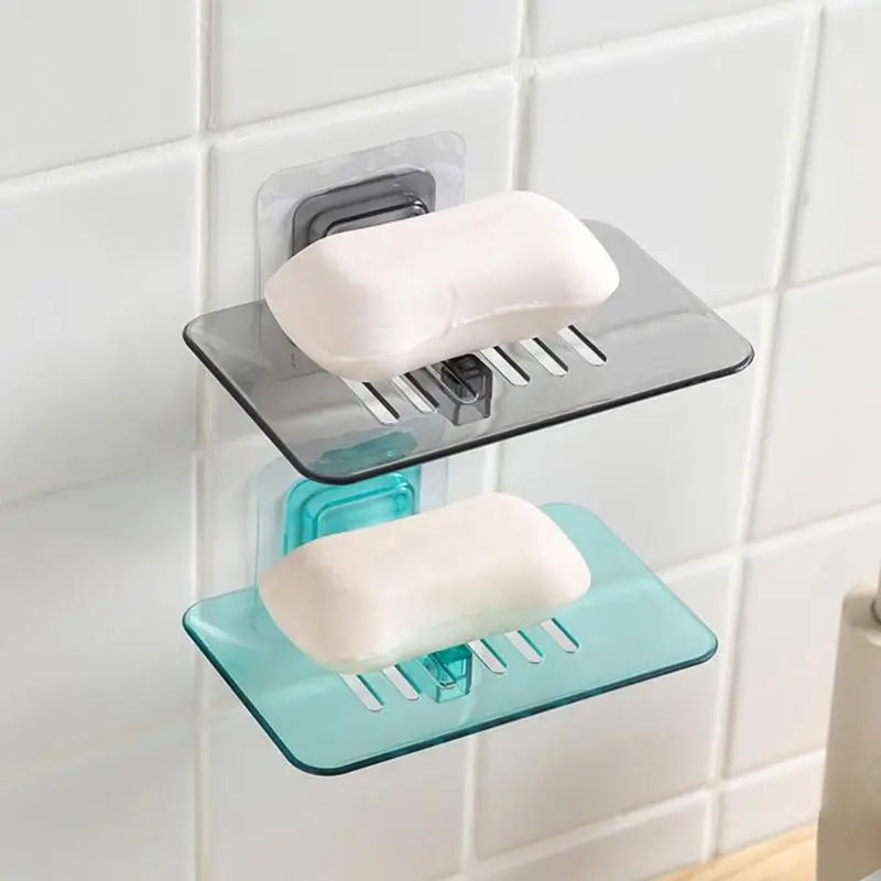 قوي الالتصاق الصابون جدار صحن علبة الصابون صندوق تخزين حامل للحمام صينية بلاستيكية اكسسوارات صناديق الرف الصابون رف 1
