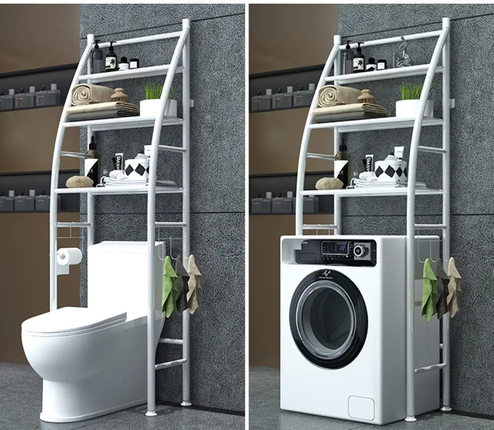 معلومات اضافية الحمام الفضاء التوقف التخزين الجرف على المرحاض مع لفة حامل و خطاف المنشفة ، المطبخ غسالة تخزين حامل ، 3 الطبقة