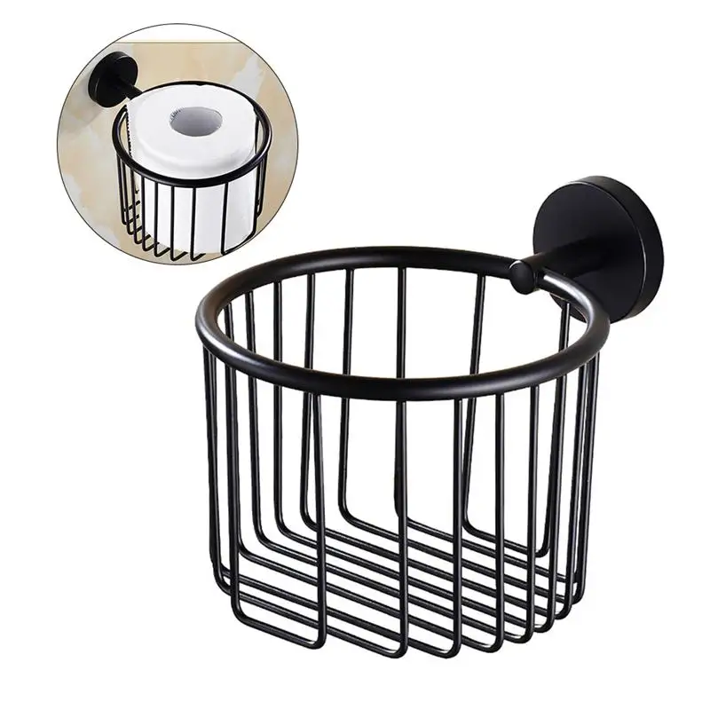 معلومات اضافية المرحاض ورقة حامل الأسود الحائط متعددة الوظائف الأنسجة سلة لفة ورقة المنظم تخزين الرف للحمام