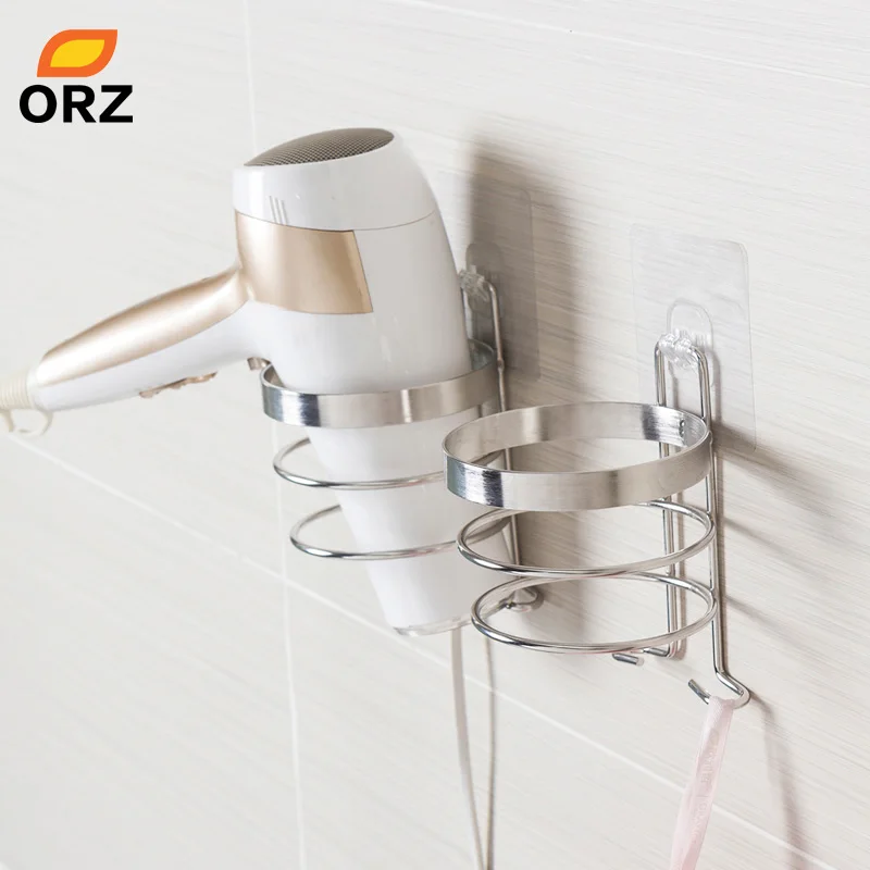 صور ل ORZ مجفف الشعر حامل مع هوك الحائط الحمام المنظم الجرف الحمام تخزين الرف الشعر ضربة حامل اكسسوارات الحمام