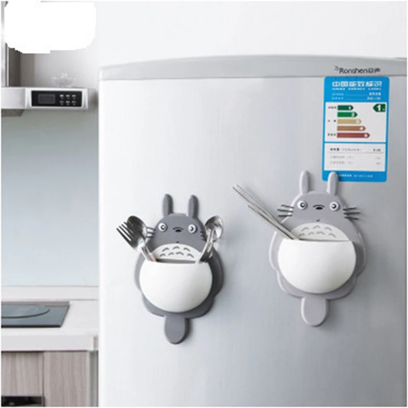استعارات من لطيف Totoro الحمام تخزين الرف مفاتيح فرشاة الأسنان حامل المطبخ هوك 3 فراغ شفط أكواب تخزين مربع على جدار باب الثلاجة