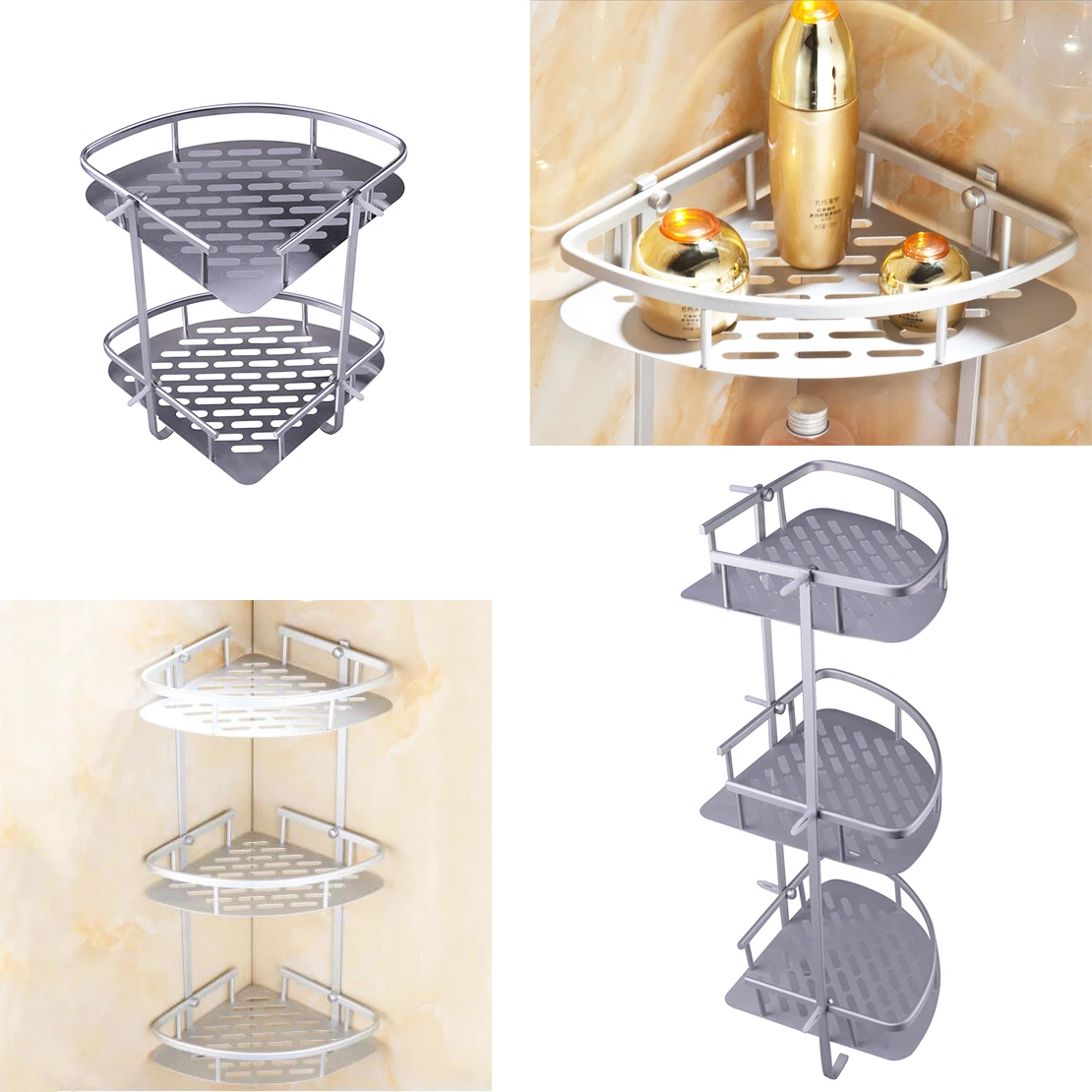 معلومات اضافية شنقا الثلاثي دش العلبة الألومنيوم الرف جدار الحمام رف الزاوية تخزين حامل مُنظِم الرف رف
