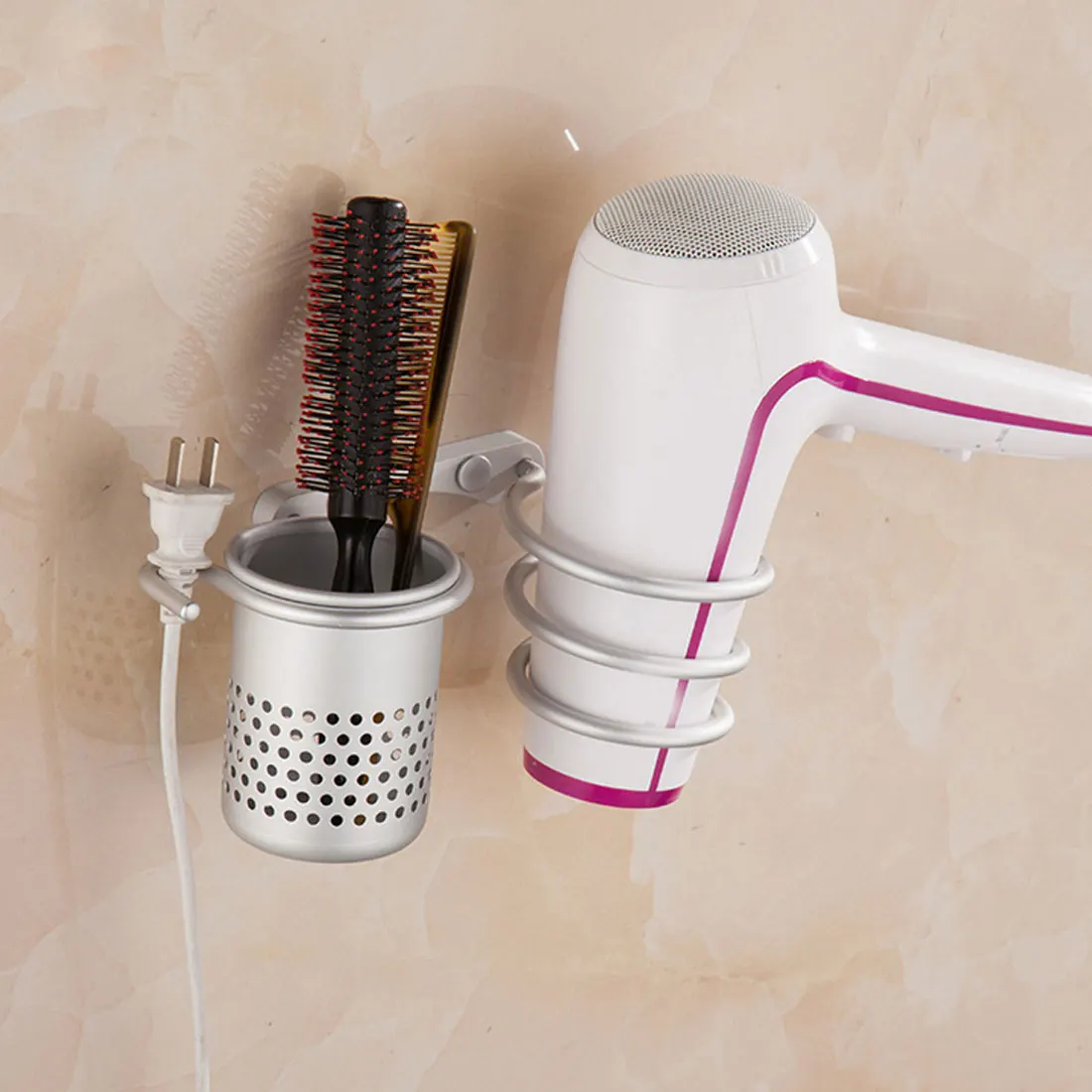 معرض ل متعددة الوظائف الحمام مجفف الشعر حامل جدار الخيالة الرف الفضاء الألومنيوم الجرف المنزل التخزين المنظم مجفف شعر حامل