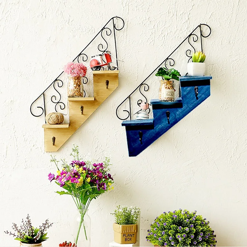 معلومات اضافية الإبداعية درج شكل تخزين الرف الخشب تخزين الرف الحديد هوك تخزين حامل ل غرفة المعيشة جدار الحمام الديكور