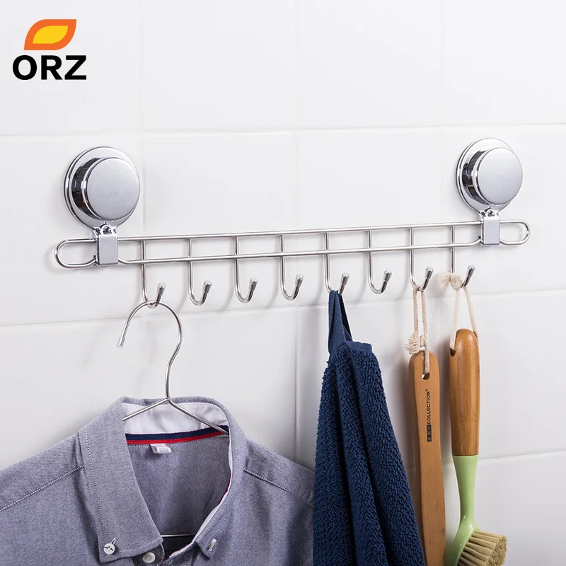 معلومات اضافية ORZ الفولاذ المقاوم للصدأ 8 السنانير المطبخ تخزين منظم رف جدار جبل الحمام الرف شماعات الزخرفية مفتاح منشفة حامل هوك