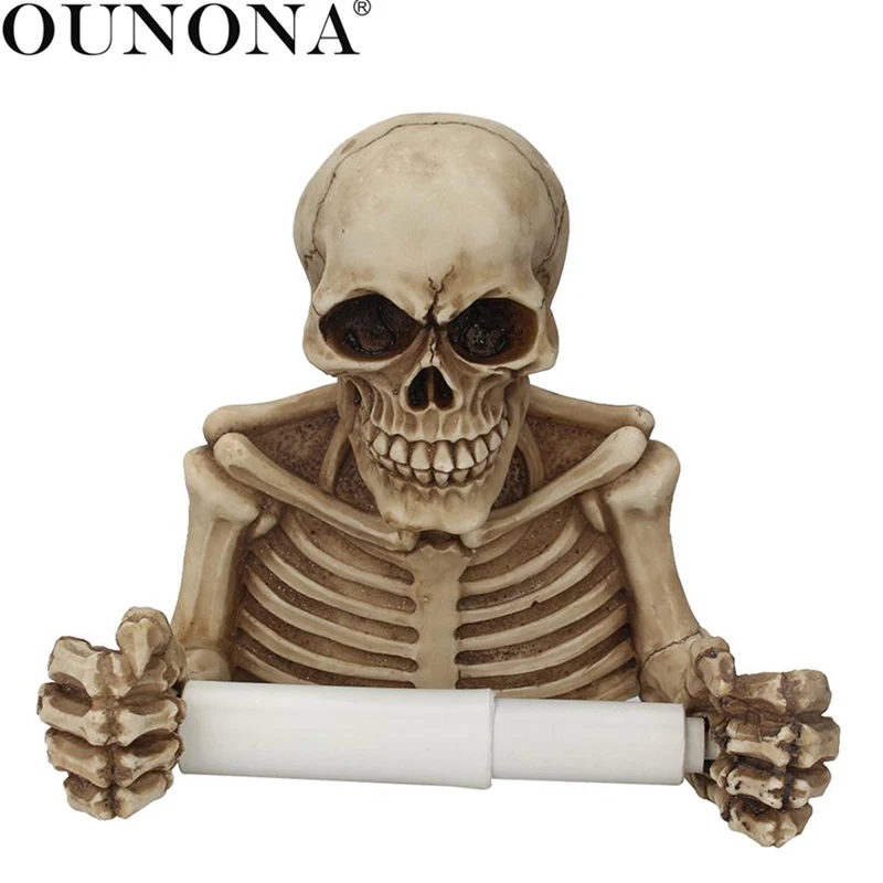 استعارات ل OUNONA الراتنج الهيكل العظمي الزخرفية حامل ورق المرحاض هالوين الحمام ديكور جدار جبل ورقة تخزين الحمام المنظم