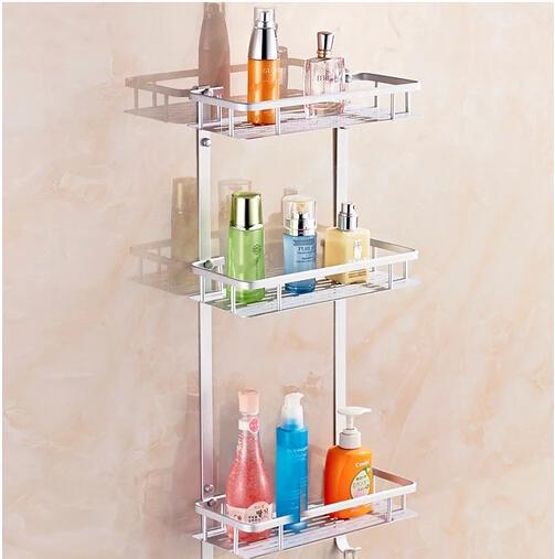 معلومات اضافية 1 قطعة جديد الفضاء الألومنيوم واحدة أو مزدوجة دش الجدار صابون شامبو التجميل تخزين الرف رفوف الحمام KF 2004