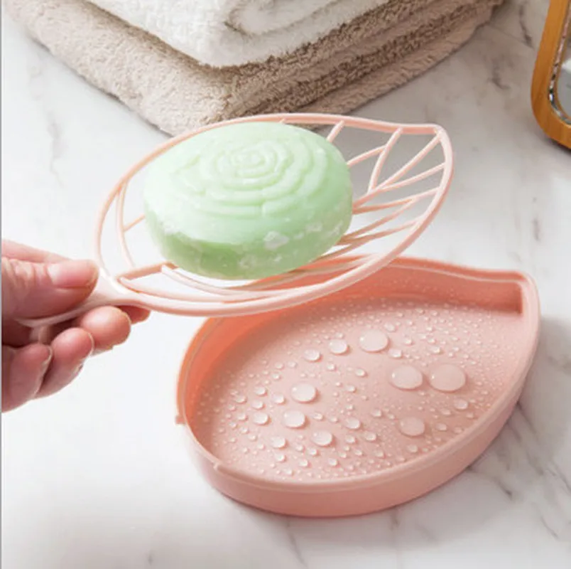 صور من طبقة مزدوجة ورقة شكل استنزاف الصابون تخزين المحمولة أطباق للصابون لوحة حامل صينية الحمام دش الصابون مربع 3 اللون ل اختيار