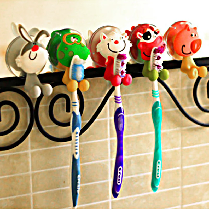 الحمام الرف المنظم لطيف الحيوان الكرتون تصميم متعددة الوظائف قوي جدار شفط فرشاة أسنان حامل رف تخزين للحمام