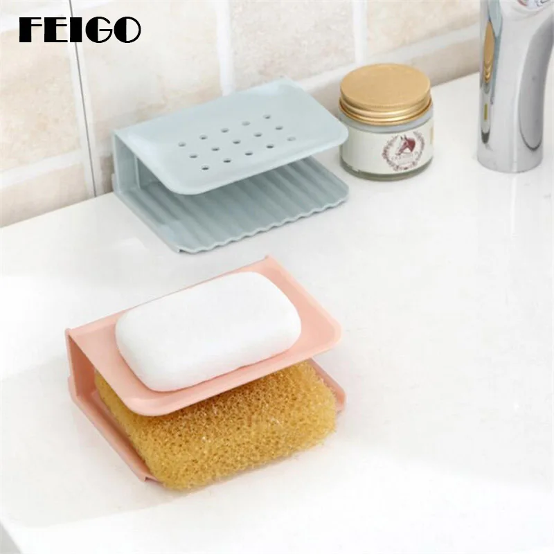 معلومات اضافية FEIGO 1 قطعة اثنين طبقة شفط حامل الصابون ملحقات الحمام صحن الصابون سلة التخزين المياه تتسرب الصابون مربع حامل حامل F38