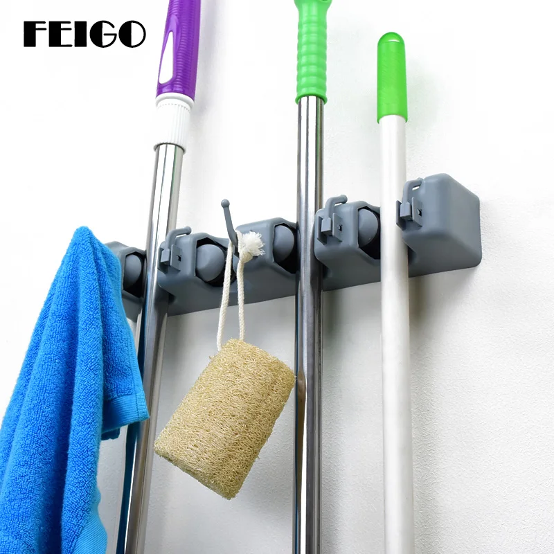 معلومات اضافية FEIGO الفولاذ المقاوم للصدأ 5 ثقوب 6 السنانير ممسحة شماعات مكنسة مظلة رف مطبخ شرفة الحمام الحائط تخزين الرف F694