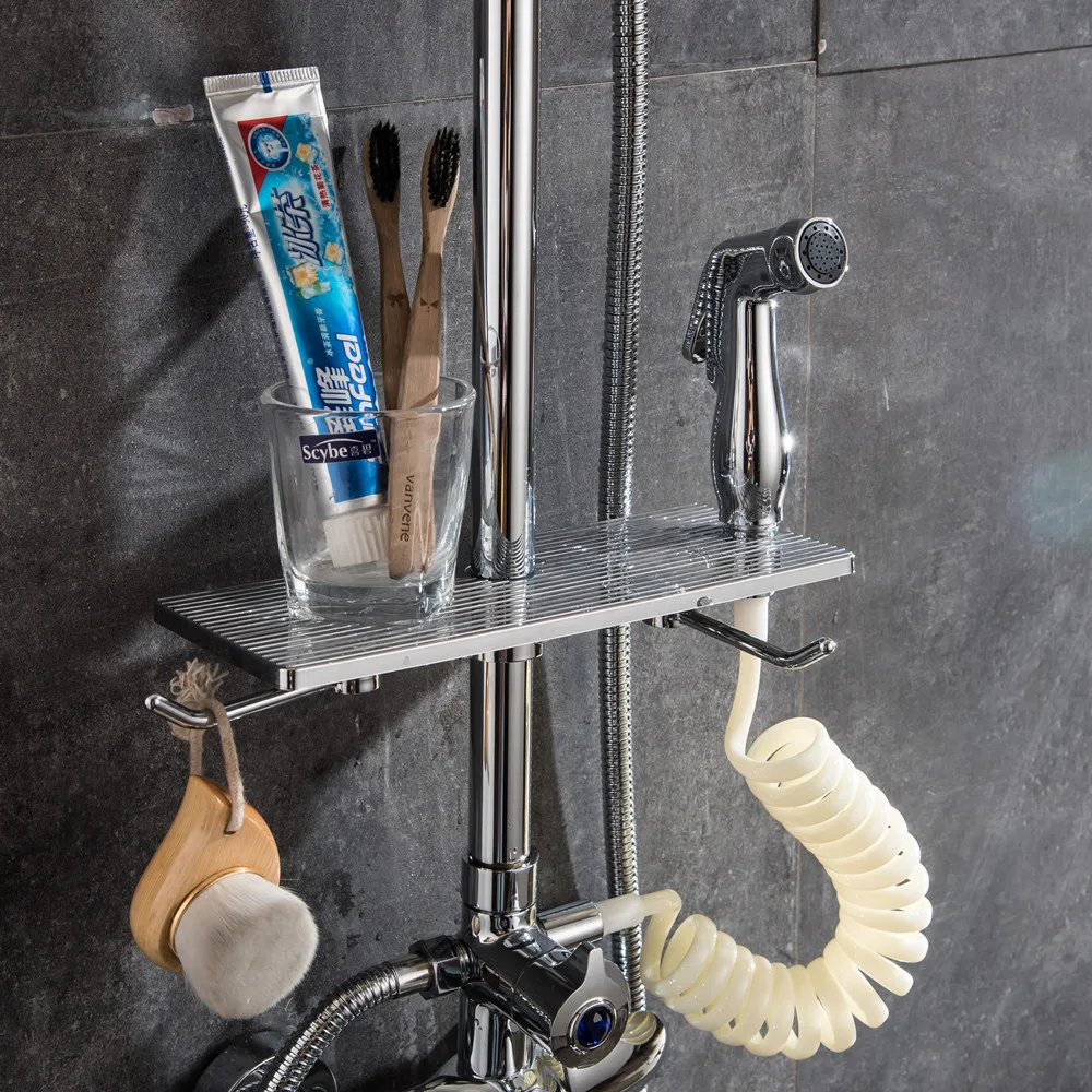 معلومات اضافية LIYIMENG الحمام الجرف الشامبو تخزين الرف المنظم حمام منشفة صينية المنزل رفوف الحمام الطبقة واحدة رأس دش حامل