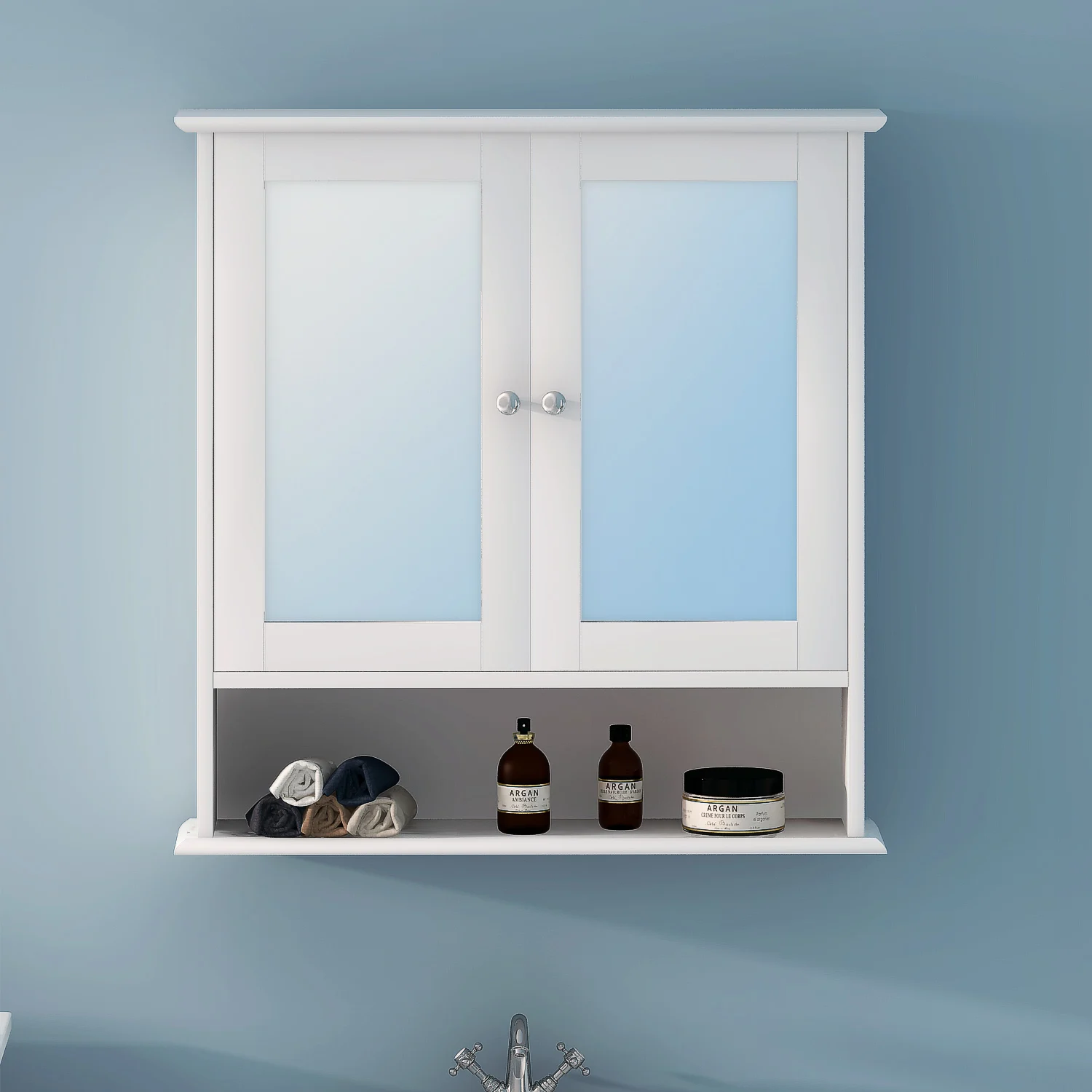 معلومات اضافية Panana مزدوجة باب مرآة خشبي خزانة حمام الأبيض خشبية الحائط تخزين وحدة رف