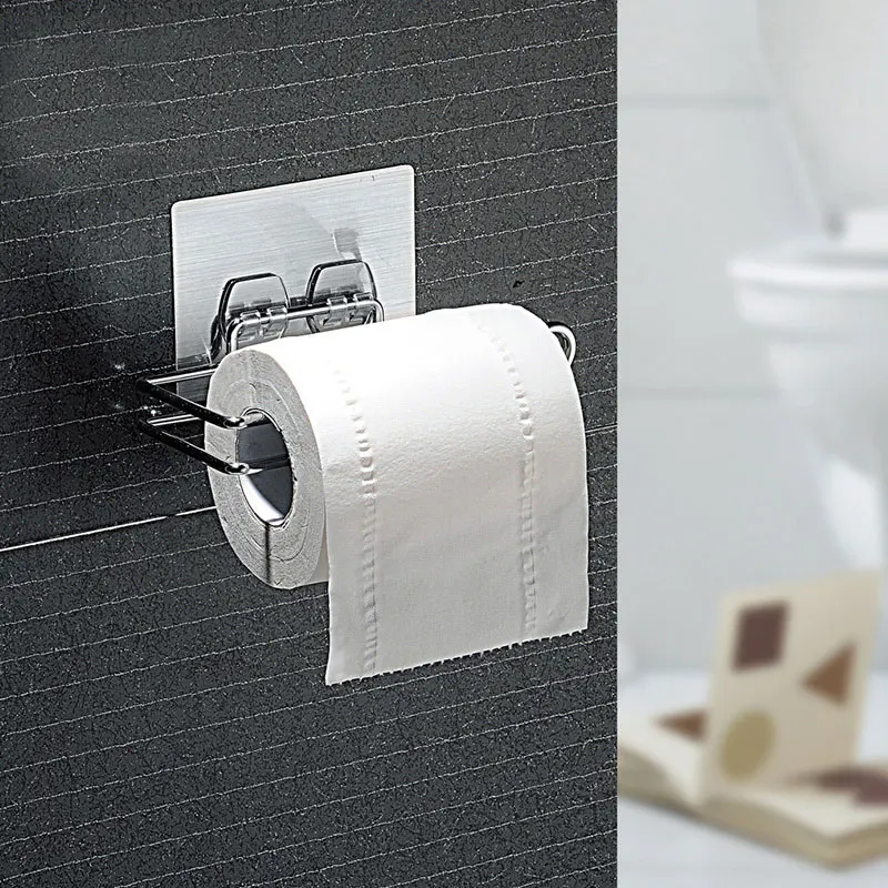 استعارات من الحائط الفولاذ المقاوم للصدأ المرحاض حامل الورق الملفوف المطبخ الحمام تخزين قابل للغسل عصا السنانير رف منشفة المنظم أدوات