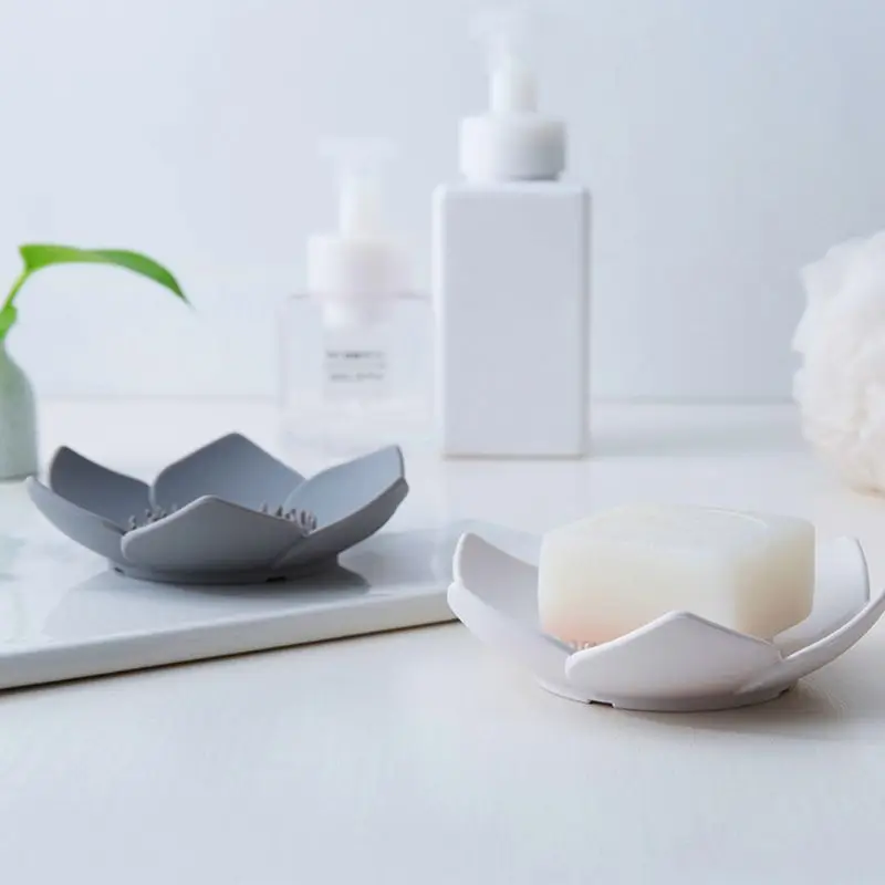 معرض من مرنة سيليكون الحمام دش الصابون مربع تخزين طبق لوحة صينية استنزاف حامل زهرة المنبر